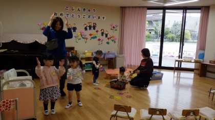 眠そうにアクビをしている子どもたちもいてるので、子どもたちの様子を見ながら保育を進めています。