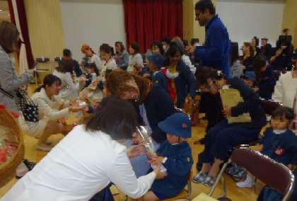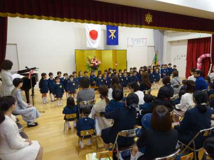 令和6年度入園式 公開日 2024/04/10 更新日 2024/04/10 お知らせ 今日は心地の良い春の日差しの中、令和6年度の入園式が行われました。 たくさんの地域の方々もお祝いに参列してくださり、温かいお言葉もいただきました。 また、式の中では、在園児の子どもたちもお祝いにかけつけて、お祝いの言葉や歌を届けました。 とても素敵な式になりました。 最後に担任の先生から、お祝いのお花とお饅頭を受け取り、入園児のお友達にも嬉しそうな笑顔が見られました。 いいね(0)