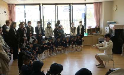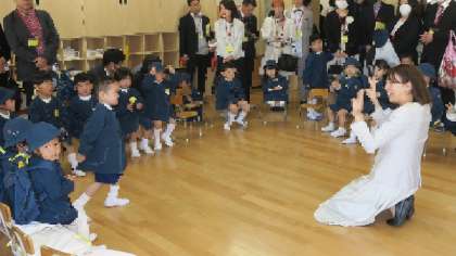 入園式の後は、保育室で担任の先生からの話を聞いたり、一緒に手遊びをしました。