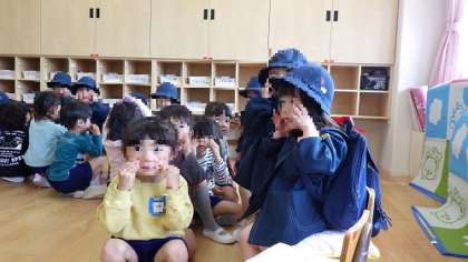 と言われても、今一つ分からず、キョトンとしていましたが、今日は、一人一人の前に行って、見せてあげつつ、お歌もしっかり歌ってくれていました。