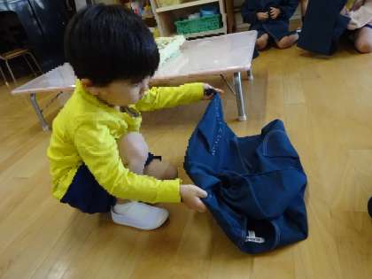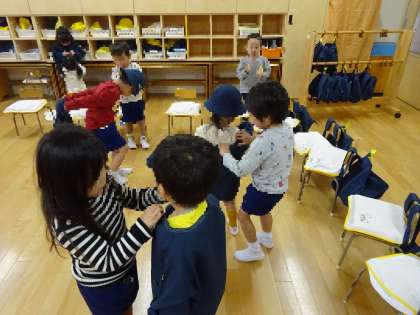 登降園の準備(4歳児) 公開日 2024/04/12 更新日 2024/04/12 お知らせ 今日は2日目でしたが、自分の身支度を自分で頑張ろうとする姿が見られていました。 「水筒とタオルを出そうか」というと、決められた場所になおしたり、脱いだ標準服を自分で畳むことも頑張っていましたよ。 進級児は、シールを貼る場所を教えてあげたり、帰りの身支度の際にはボタンの手伝いをしてあげたりする姿もありました。この小さな関わりの積み重ねが、友達への親しみにもつながっていくのかな、と思います。 いいね(0)