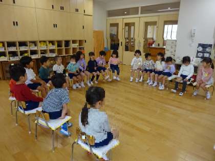 みんなでピアノに合わせて手遊びをしたり、歌を歌ったりして楽しみます。