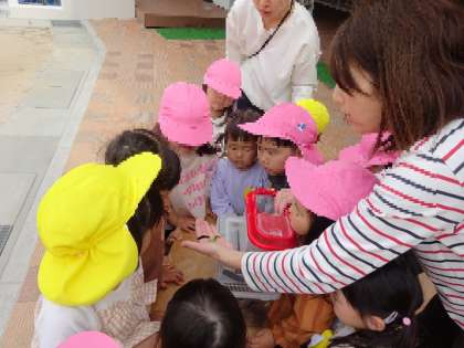 まだまだ幼虫がいるので、また一緒に育てながら、サナギやチョウになっていく様子をみて、身近な自然に興味や関心をもったり、生命の尊さに気付いたりできるようにしていきたいと思います。