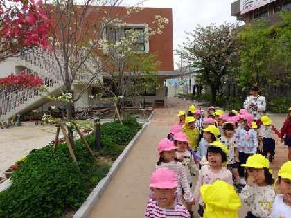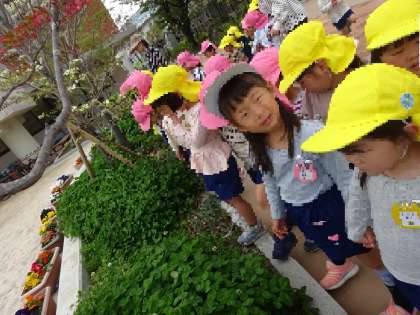 園庭の散歩(4歳児) 公開日 2024/04/16 更新日 2024/04/16 お知らせ 今日は園庭に出る前に、ほし組・ゆき組で一緒に手をつないで園庭の散歩に出かけました。 伝法幼稚園は園庭に自然がいっぱいです。 花壇にはシロツメクサやクローバーがたくさん育っていて、自転車置き場の横には柚子の木や金柑の木などがあります。「ハナミズキ」の木も昨年は花をつけてなかったのですが、今年は綺麗な花をつけています。 みんなで、園庭にある自然を感じたり、知ったりしながらお散歩を楽しみました。 いいね(0)