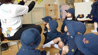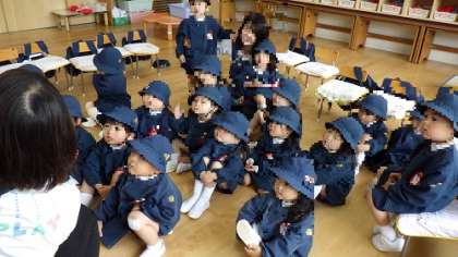 「先生のそばにいたら、楽しいことがある」と分かれば、集まって座ります。