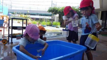 夏休み、楽しんでいますか? 公開日 2025/07/30 更新日 2025/07/30 お知らせ 夏休みが始まって、そろそろ2週間です。 元気に過ごしていますか? 幼稚園には、一時預かり事業のひよこクラブに参加している子どもたちが登園しています。 暑いので、水分補給をしながら日陰で水遊びをしていました。 冷たい水に触れて遊ぶことは楽しいですね♪ いいね(0)