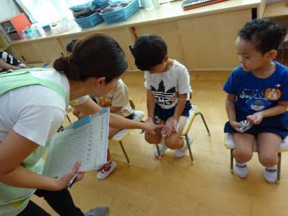 保健指導(5歳児) 公開日 2025/09/01 更新日 2025/09/01 お知らせ 今日のそら組・つき組での保健指導は、「清潔について」です。 ◆清潔ってどういう意味かな ◆どうして体をきれいにした方がいいのかな ◆爪が長いとどうなるかな ◆ハンカチとティッシュはどんな時に使うのかな といった内容のお話をしました。 最後にはひとりずつ、ハンカチ・ティッシュ・爪のチェックをしました。 ご家庭でも確認をお願いいたします。 いいね(0)