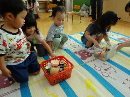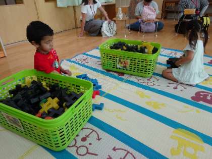 先生に名前を呼んでもらったり、置いてある遊具で自分の好きな遊びを楽しんだりしていました。