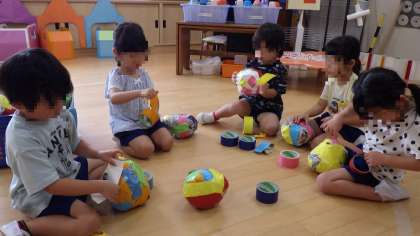 「先生見て!」「こんなのできるよ」「これも見て」と、いろいろな遊び方を考えながら遊ぶ姿が見られました。