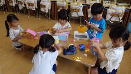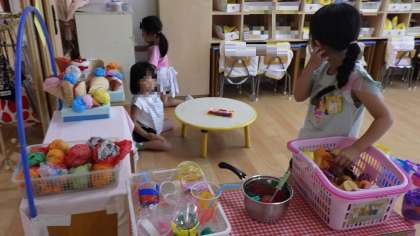 保育室での遊び(4歳児) 公開日 2025/09/05 更新日 2025/09/05 お知らせ 朝の用意が終わると、それぞれに好きな遊びを始めます。 空き箱を組み合わせて飾り付けをし、パトカーやユニコーンをつくったり、いろいろな食べ物が売っているお店屋さんごっこをしたり、DENでネコになったり、ソフトブロックでつくったりして遊んでいました。 DENでは、このあと大きなおうちが2つできてました♪ 好きな遊びを見つけ、夢中になって遊ぶことができるようにしていきたいと思います。 いいね(0)