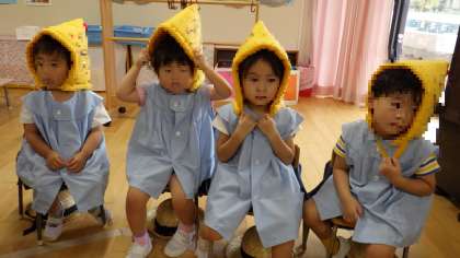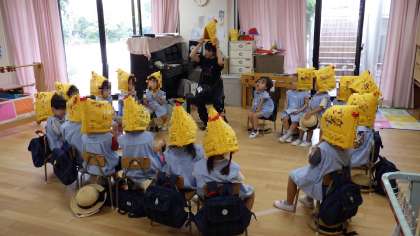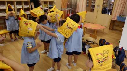 1学期何度か避難訓練をしていたので、防災頭巾のかぶり方はばっちり!!