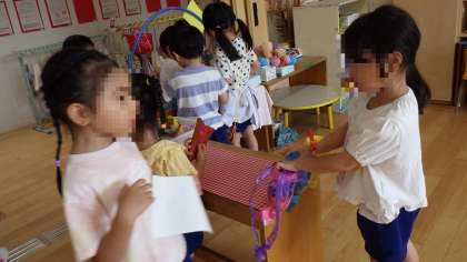 「いっぱいお客さん来た」「大忙しや」と言いながらも、表情はとても嬉しそうな子どもたちです。