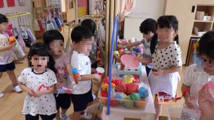 1学期からほし組では、「いらっしゃいませ〜」と元気いっぱいに声をかけてくれるアイスクリーム屋さんが開いていました。