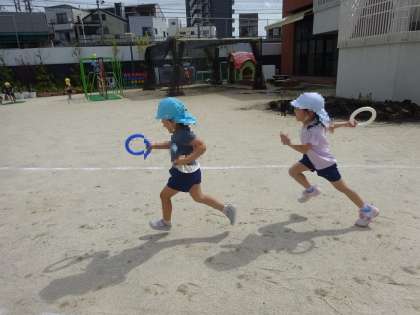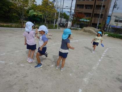 今日はいつもより気温も低く、戸外でリレーをして遊びました。