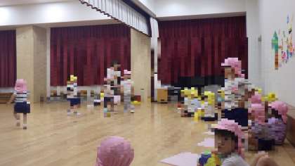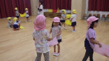 布の上にボールをのせて、そーっと運んでいた子どもたちですが、