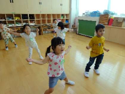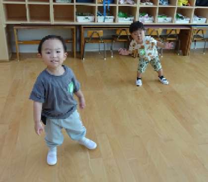 お部屋の中でも伸び伸びと体を動かして遊んでいます。