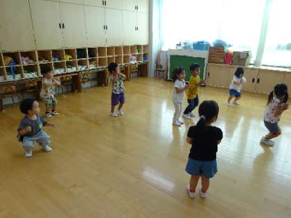 みんなで大好きな「ラーメン体操」を踊っていました。