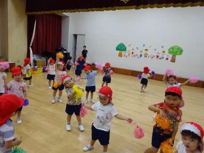 以前からダンスを保育室でしていましたが、今日はスペシャルアイテムのポンポンを使ってダンスをしました。