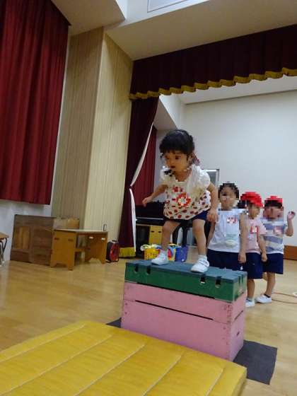 その後は自分の好きなフルーツになってコロコロ転がったり、フルーツの森(巧技台)で遊んだり…