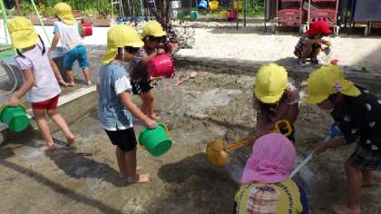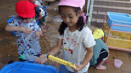 今日は園庭に出て、たくさんの友だちと遊びました。