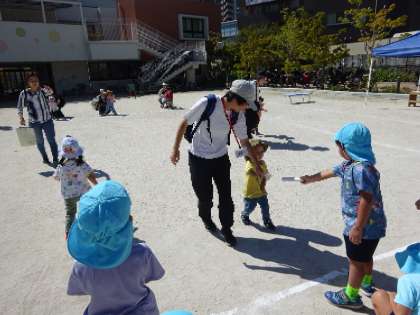 かけっこでは、ゴールで待っている年長児のところまで走っていき、お手紙のプレゼントをもらうことができました。