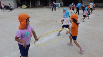 自分の頑張りたい運動遊びに何度も挑戦したり、友達と力を合わせたりして頑張っています。「諦めない気持ち」をもち始め、「友達と頑張る楽しさ」を感じ始めています。