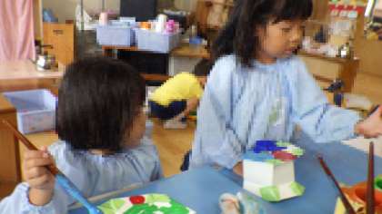好きな色で絵の具を塗る姿がとても嬉しそうでした!
