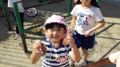 今日は、園庭に出て落ち葉探しをしました。