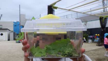 親しみや思いやりの気持ちをもってお世話をしようとする子どもたちの姿を認め、幼虫の成長を一緒に見守っていきたいと思います。