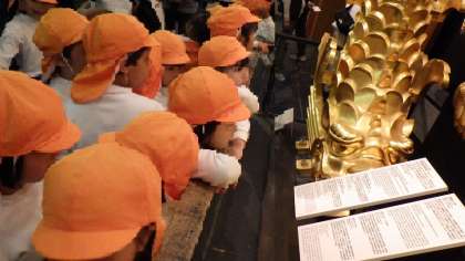 シャチホコや伏虎を近くで見ることができて「こんなに大きいの?」「壁にいた動物って虎だったん?」と驚いていました。