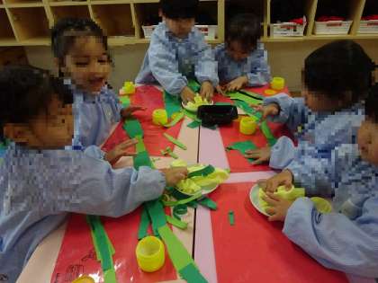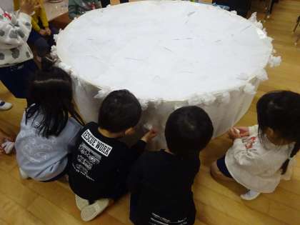 今日も朝から、みんなで緑の画用紙をつなげていきました。