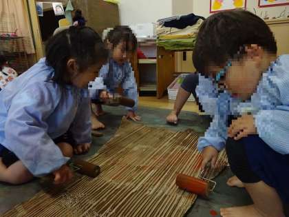1人で黙々とつなげる子ども、友達と一緒に「付けよう♪」と協力してつなげる子ども、いろいろな姿が見られました。