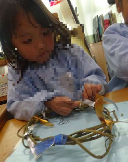 飾りも毛糸やリボンなど、自然物(ドングリやマツボックリ、ドライフラワー)などを使って素敵なものができました。季節を感じられる作品になりました!
