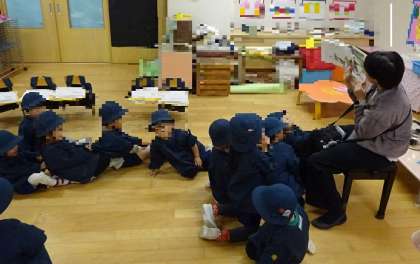 いちご組では、降園前にいつも絵本を読んでいますが、今日は『大きなかぶ』を読むことにしました。