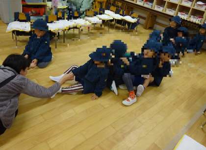 絵本を読み終え、せっかくなので、教師がカブになりみんなでカブごっこをして遊びました。