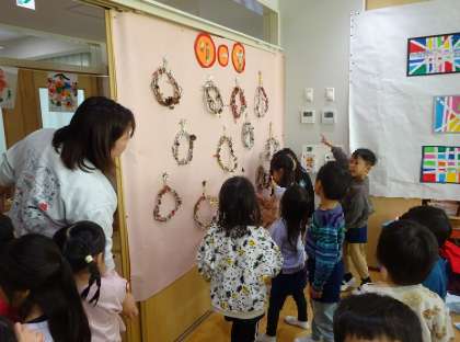 子どもたちは自分の作品を見つけるのがとても早いです!