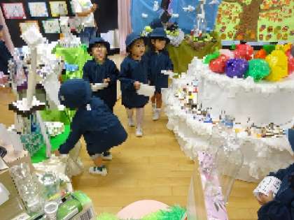 「明日楽しみだね〜」とお家の人に自分たちの頑張ってつくった作品や絵を見てもらうことをとっても楽しみにしています!