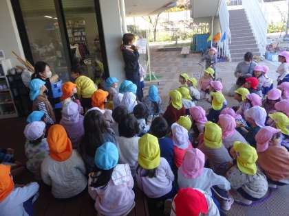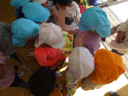 見つけた年長児が幼稚園の全員に知らせてくれ、みんなでワクワクしながら手紙を開けます。