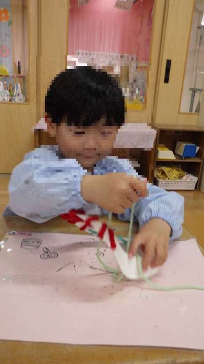 好きな毛糸を選んで、ボンドでつけてどんどん巻いていきます。