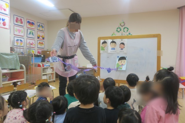 今日は、いちご組で咳エチケットについての保健指導をしました。