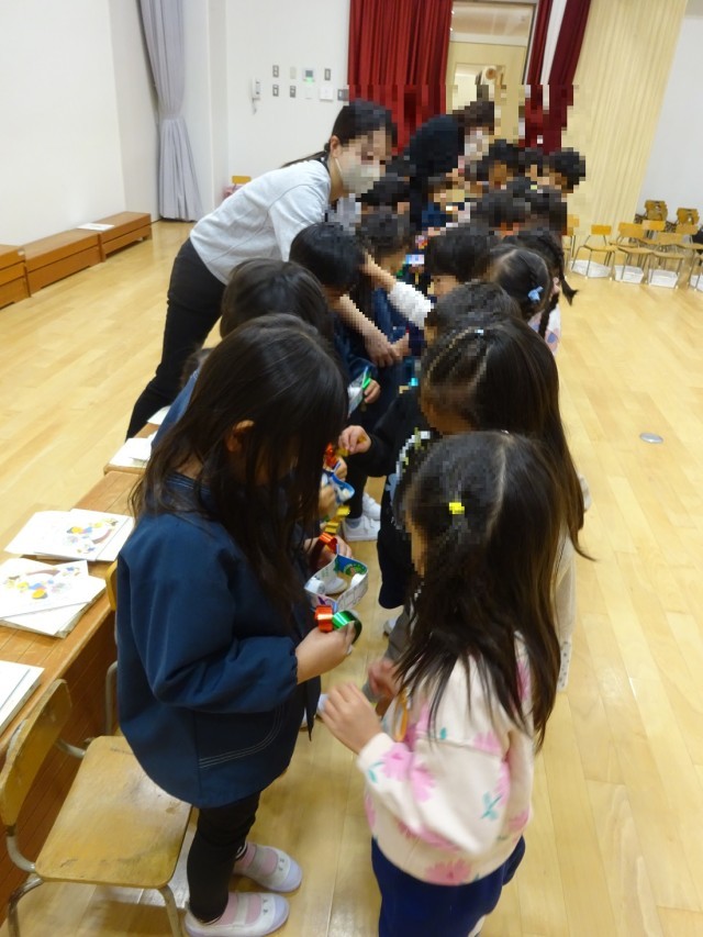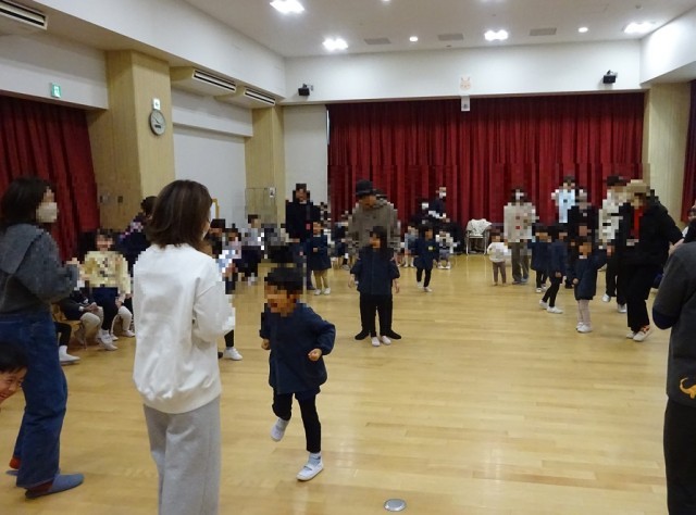 園長先生がサンタクロースのパネルシアターをしてくれたり、おうちの人とと一緒に『サンタッタ』を踊ったりしました。