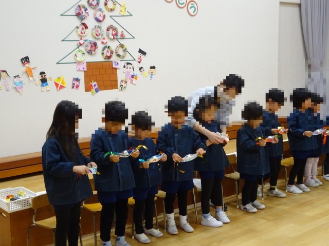 誕生児の友達みんなで「あわてんぼうのサンタクロース」に合わせてカスタネットを鳴らして楽しかったですね。