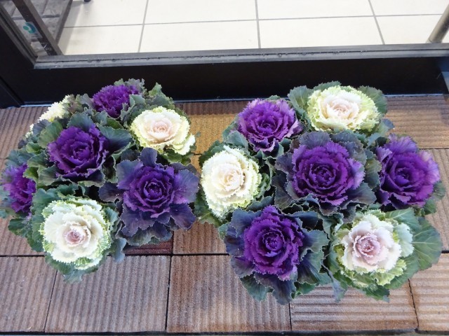 葉牡丹の花言葉に祝福があるそうです。赤紫色や白色の葉が紅白を連想させるため、おめでたい・縁起のいい花としてお正月に飾ることが多いそうです。