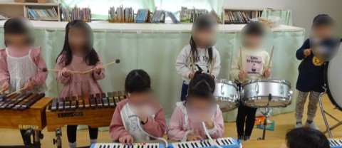 合奏では木琴や鉄琴、鍵盤ハーモニカなどでメロディーを弾いたり、打楽器で拍を感じたりしながら遊んでいます。