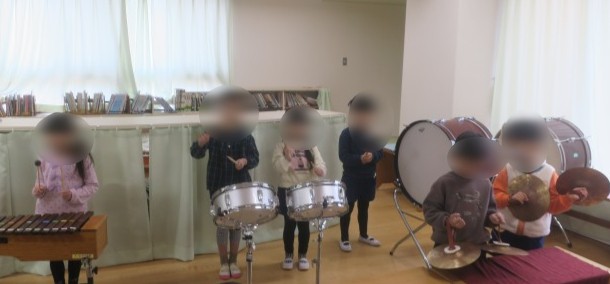 合奏では、友達とリズムを合わせたり、ピアノの音を聞いて演奏したりすることを頑張っています。
