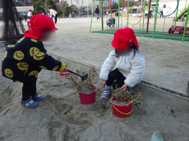 この2日間、寒い日が続いていますが、子どもたちは寒さの中でも元気に戸外で遊んでいます。