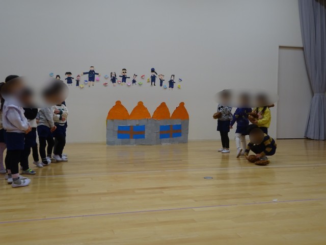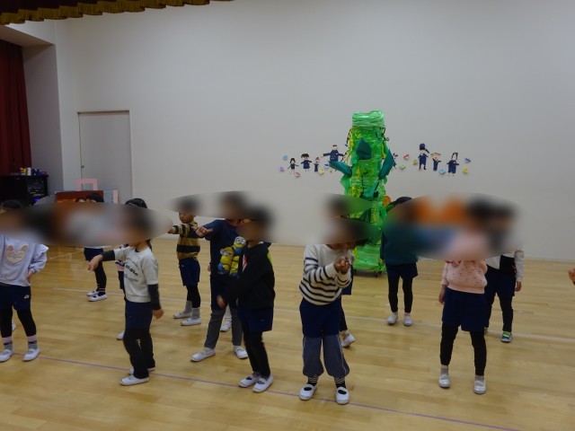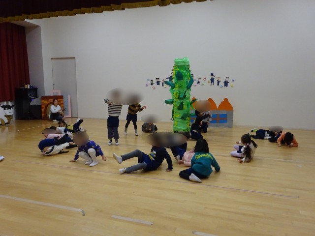 劇あそびごっこ 楽しんでいます(5歳児) 公開日 2026/01/30 更新日 2026/01/30 お知らせ 言葉のやり取りや、ダンス、表現遊びを楽しんでいます。「今日も、ジャックと豆の木ごっこする?」「やったー!」と、楽しみにしているようです。役を代り合って遊んでいましたが、役に分かれて遊んでみましたよ。効果音や大道具の出し入れにも、挑戦しています。年長児らしい姿が見られています。 いいね(0)