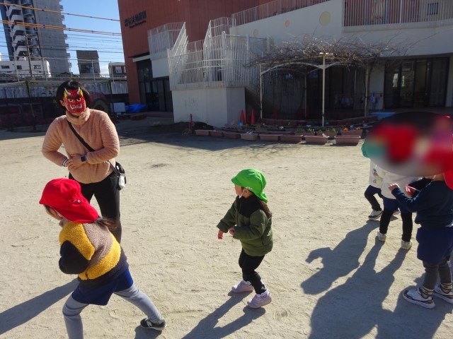 「鬼さん怖くなかったね」「豆まき楽しかった!」「もう一回したい」と大喜びでした。