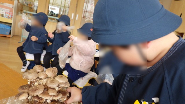 「好きなきのことそうじゃないきのこがあるねん」と言っていた子どもも、しいたけが大きくなっていく様子を見ているうちに、「美味しそう」「早く持って帰りたい」と、話すようになっていました。