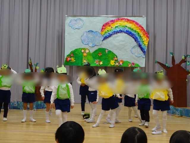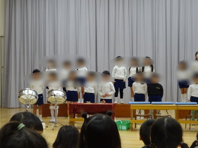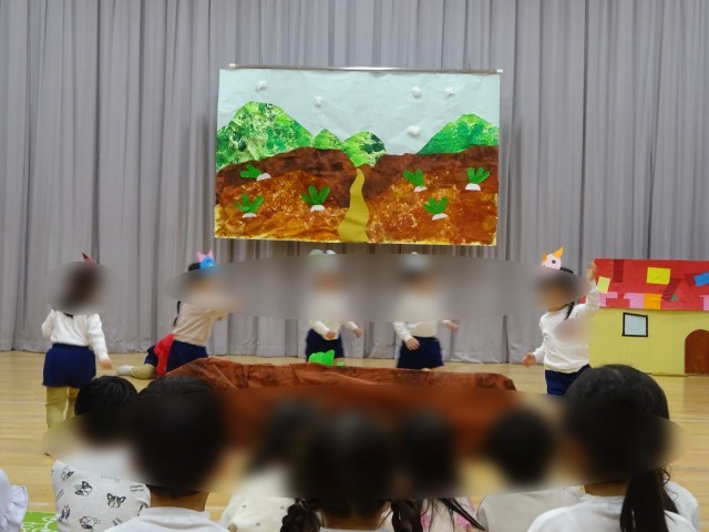先生や友達と一緒に劇や楽器遊びをする中で、助け合ったり楽しさを共有したりすることを今後も味わっていけるように取り組んでいきたいと思います。